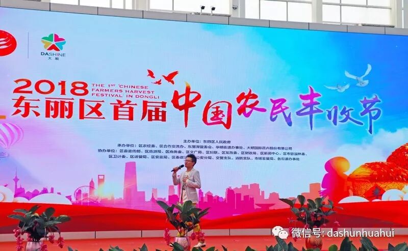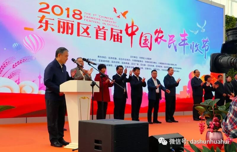 演出结束之后,东丽区主要领导和参与活动的各部门主管纷纷来到主席台上,先后致辞讲话,最后由区委书记夏新同志宣布本次农民丰收节庆祝活动开幕。