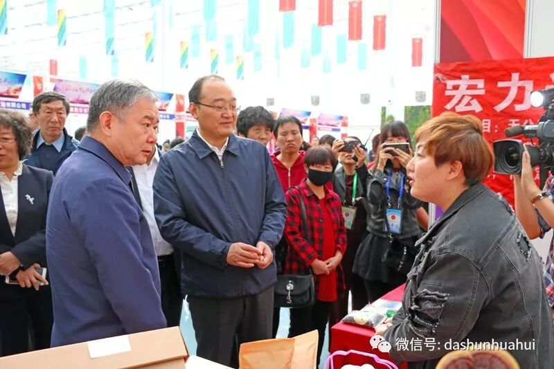 典礼活动结束以后,领导同志们纷纷走到各展销摊位前,与参加展会的工作人员亲切交谈,详细询问各种问题。各个展位上瓜果飘香,陈列着各种特色农产品。