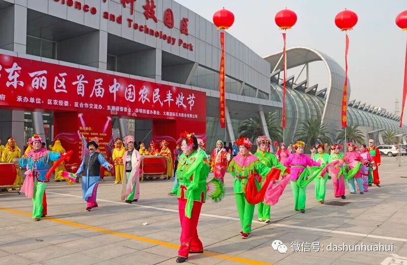 金秋时节,天朗气清,惠风和畅,红旗招展,人山人海。今天是个庆祝丰收的好日子,伴随着欢快喜庆的锣鼓声响和热情的秧歌舞蹈,2018东丽区首届农民丰收节庆祝活动在大顺花卉--天津滨海国际花卉园区盛大开幕。